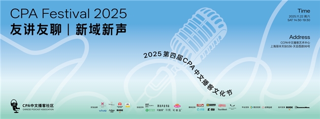 作为每年中文播客行业的风向标,第四届CPA中文播客文化节(CPA Festival 2025)于2025年11月22日在上海丽丰天际S36-CCPA中文播客艺术中心举行。活动颁发了第四届CPA中文播客奖,还举办了业内首个面向品牌主和商业伙伴的播客营销发布会。