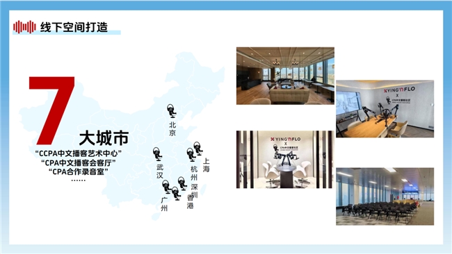 从2023年开始,CPA已经在北京、上海、广州、厦门等多个城市设立CCPA中文播客艺术中心(CCPA)、CPA中文播客会客厅(CPA Hub)等线下空间,帮助创作者进行内容制作,联合开展活动运营,探索多元商业模式。