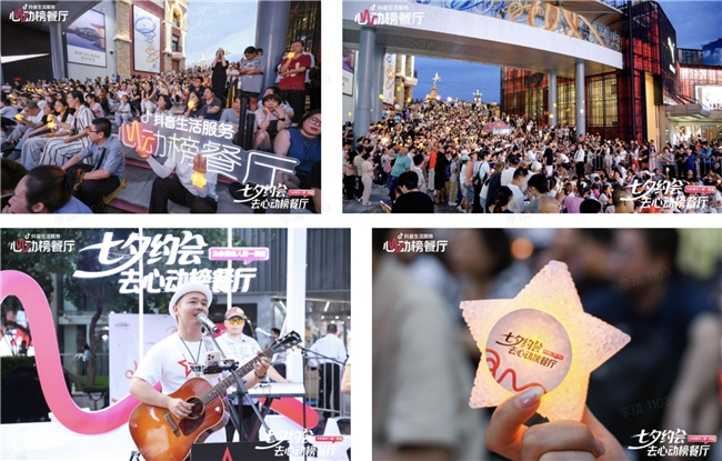 蓝色港湾联合抖音生活服务,结合热门IP「星光音乐会」落地七夕主题活动。郑哲伦称,现场节日浪漫氛围拉满,带动当日客流提升超两成。合生汇联合抖音,会同B1、B2层的「21街区」拉面、炸串、盖浇饭等200余家店铺,推出「七夕约会去合生汇」主题活动,把分散的消费场景重新组合成一个「节日事件」,再通过直播一站式发券,转化率直线上升。