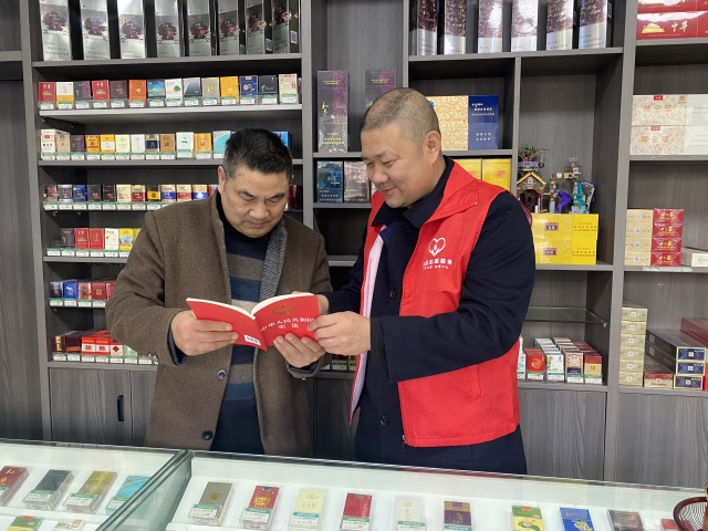 除了“一对一”讲解,志愿者们还带来法治短视频、互动问答卡,不少零售户主动将宣传资料摆上收银台,让顾客在购物时也能随手翻阅。小小的店铺里,法律知识成为老板和顾客的“共同话题”,普法宣传既有温度又接地气。