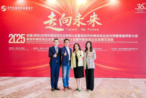 2025年12月16日,全国(深圳)优秀外商投资企业表彰大会暨会员代表大会在深圳成功召开。本次大会由中国外商投资企业协会与深圳市人力资源和社会保障局指导,深圳外商投资企业协会主办。商务部驻广州特派员办事处特派员尹虹,广东外商投资企业协会秘书长王奕,市投促局、市委社工部、市人社局 、市市监局、市工商联、市贸促会、境内外商会代表、获奖企业代表、获奖企业管理者、世界500强企业代表、媒体代表等600多位嘉宾出席本次大会。大会对多家优秀企业予以表彰,涵盖“双优企业奖”“和谐劳动关系促进奖”“合规建设奖”和“绿色减碳促进奖”等多个奖项,充分体现了对企业卓越绩效的高度认可,以及外商投资对深圳经济社会发展的重要贡献。