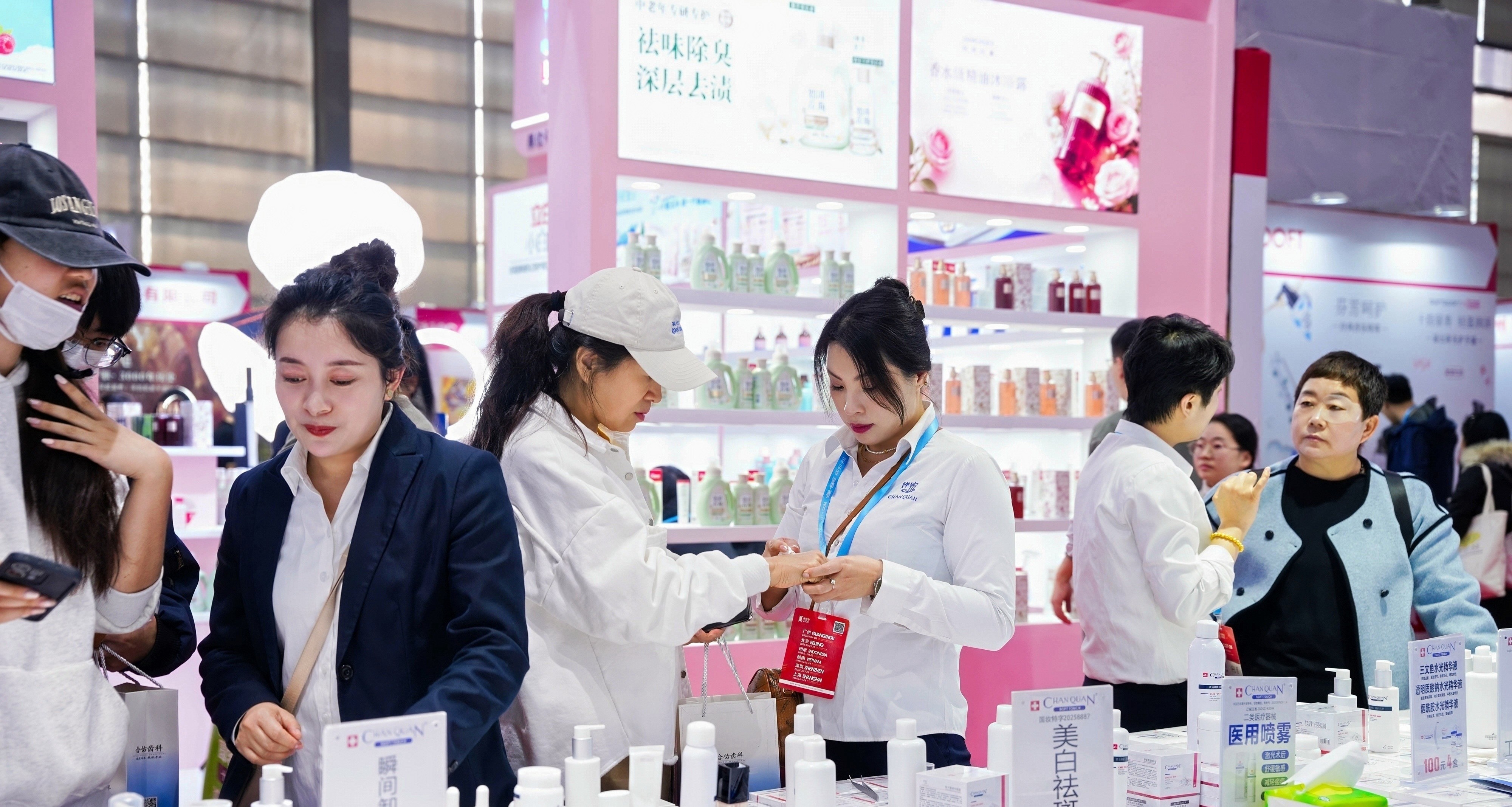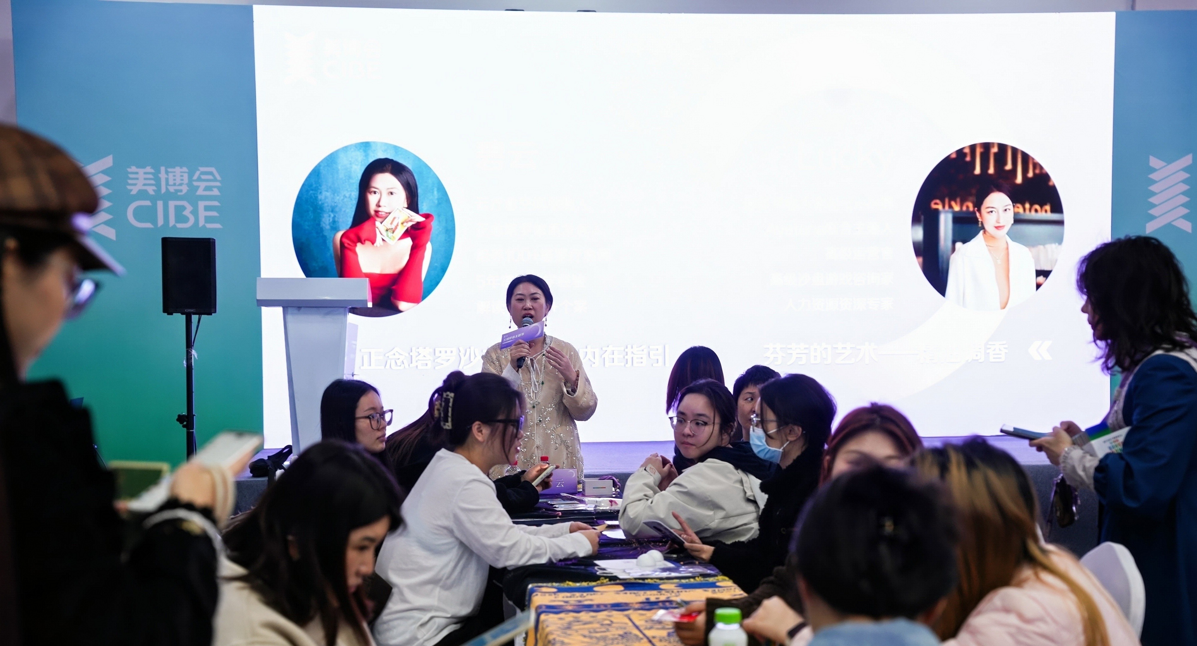 特色展区与专业论坛的举办,让现场体验感与行业价值同步攀升。抖音电商展区成为人气“流量高地”,护肤、家清、养生、仪器、美甲美睫、香氛精油等120+品牌现场开播,直播间互动刷屏、订单持续递增,选品柜展区同步开展试玩试妆、一对一咨询等活动,实现线上线下流量融合与商贸转化的双向赋能。同期举办的高峰论坛全程高能,精准聚焦科技美容、口服美容、美妆出海、门店运营等行业热点,为产业高质量发展指明方向。