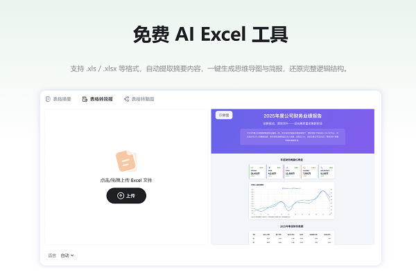 该工具可自动分析表格逻辑,提取核心内容,并一键生成可视化的思维导图与简报,实现从数据到洞察的智能跃迁。
