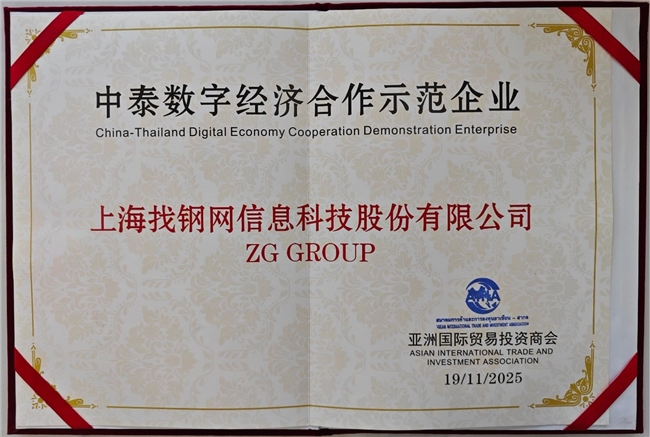 2025 年 11 月 19 日,由泰国数字经济与社会部、亚洲国际贸易投资商会、泰国数字经济理事会联合主办,中国信息协会产业互联网分会协办的“2025 泰国数字经济高峰论坛” 在泰国曼谷 IMPACT 会展中心成功举办。找钢网在会上获得由亚洲国际贸易投资商会颁发的“中泰数字经济合作示范企业”荣誉奖牌,充分彰显了找钢国际在探索海外供应链数字化服务上的成果。