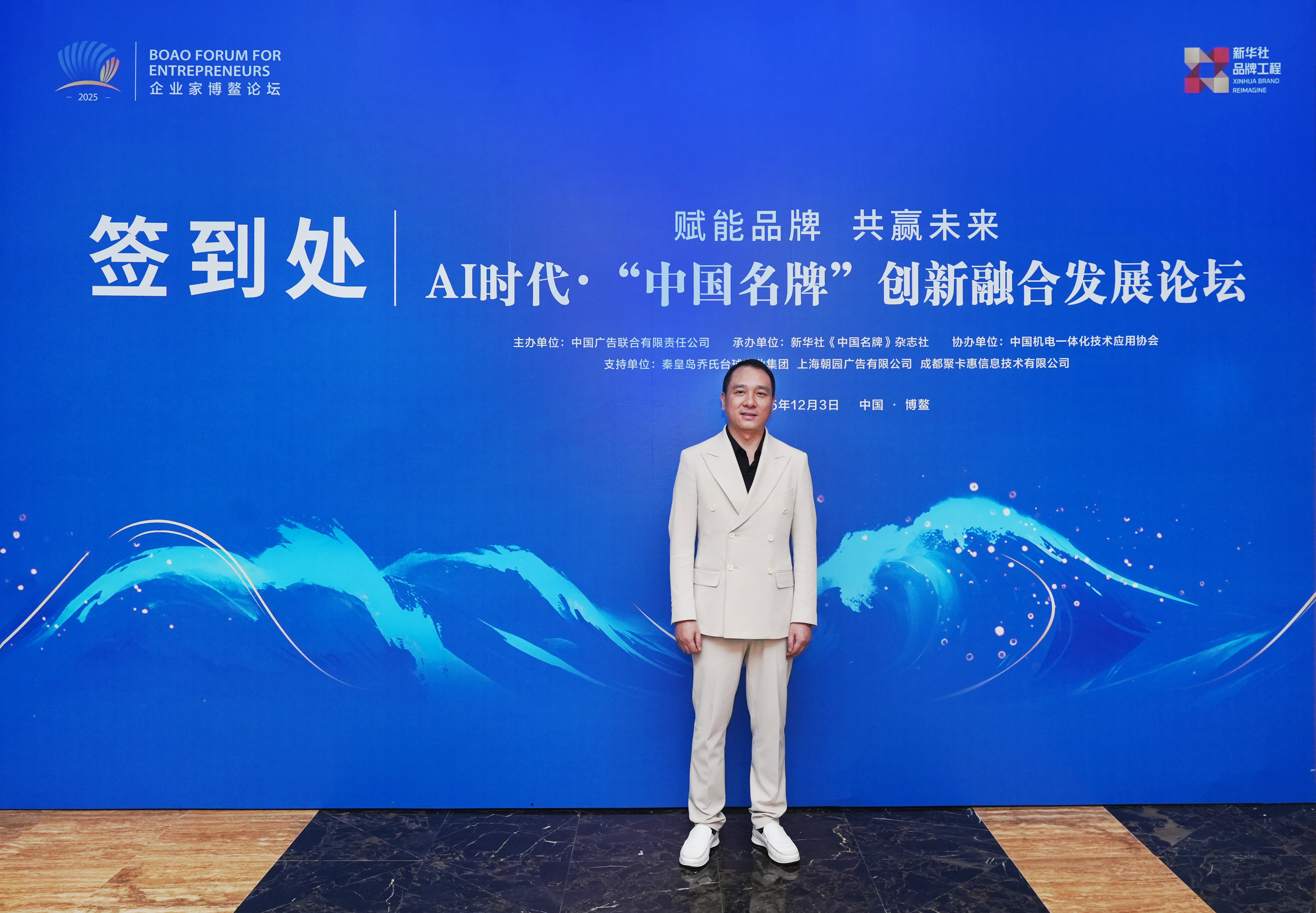 2025年12月3日,2025企业家博鳌论坛- AI时代“中国名牌”创新融合发展论坛在海南博鳌亚洲湾国际大酒店举行。论坛由中国广告联合有限责任公司主办,新华社《中国名牌》杂志社承办,汇聚政府、学界、行业协会及企业界百余位代表,共同探索智能化背景下品牌发展的新路径与新实践。本次论坛以 “赋能品牌 共赢未来” 为核心主题,通过政策解读、案例分享、主旨演讲及圆桌对话等多元环节,致力于搭建一个高效协同的交流合作平台,为中国品牌在人工智能时代的跨越式发展凝聚智慧、探索方向。