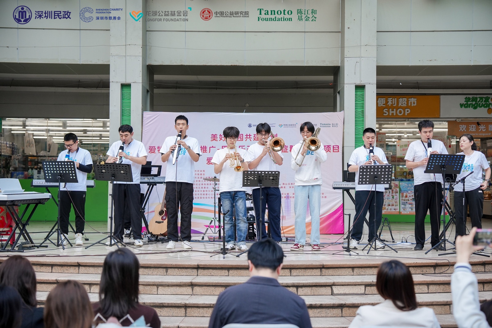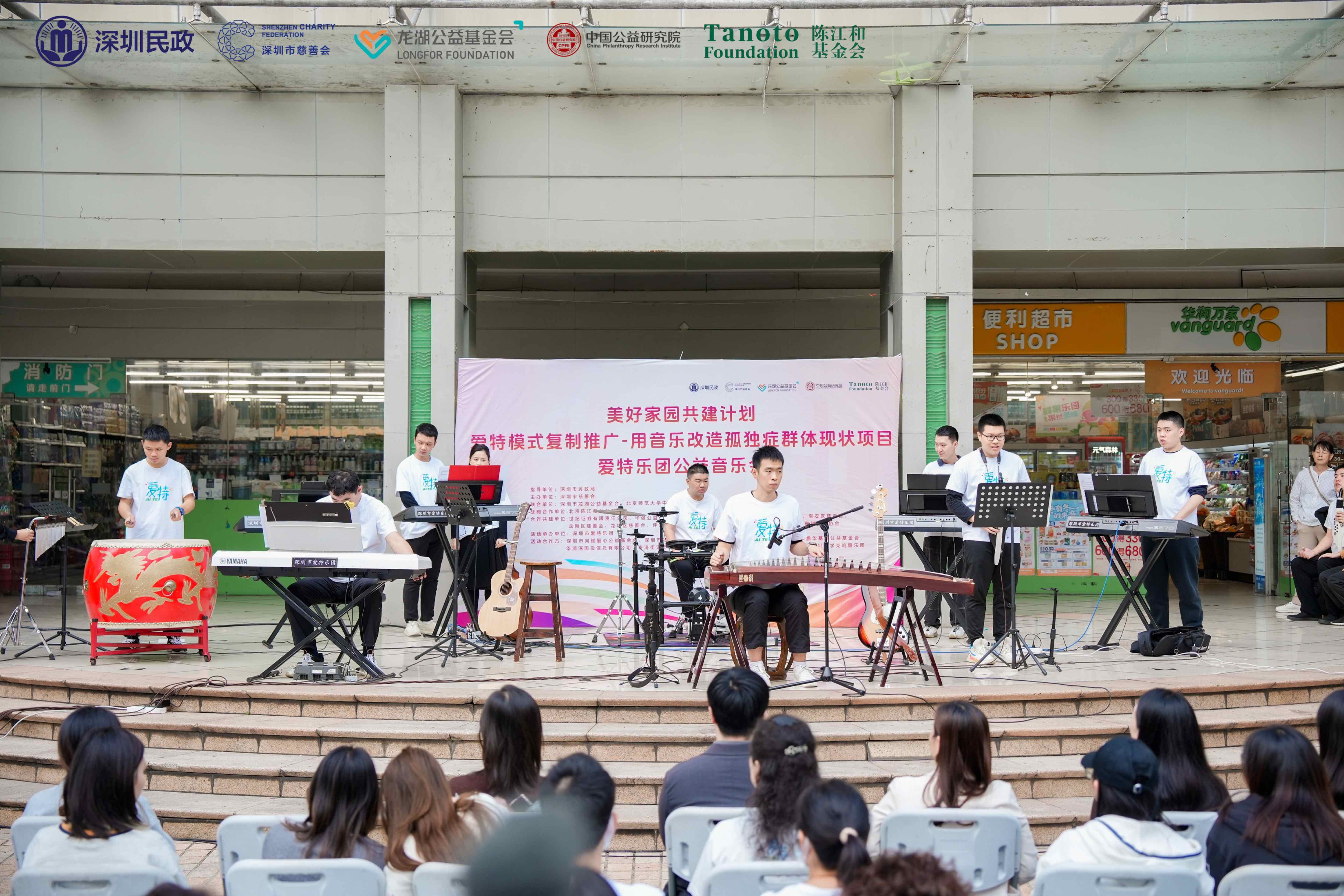 12月3日,“美好家园共建计划·爱特模式复制推广——用音乐改造孤独症群体现状项目·爱特乐团公益音乐会在深圳市南山区粤海街道蔚蓝海岸二期9栋华润万家超市门口成功举办。本次活动由深圳市民政局指导,深圳市慈善会主办,深圳市龙湖公益基金会、北京师范大学中国公益研究院联合发起,北京陈江和公益基金会作为战略合作单位,世纪证券有限责任公司、华强公益基金会、福田区慈善会、 罗湖区慈善会、南山区慈善会、宝安区慈善会、 龙岗区慈善会、龙华区慈善会、坪山区慈善会、深圳市慈善会·金大福公益基金、深圳市注册税务师协会共同合作共建。活动由深圳市爱特乐团承办,并得到深圳市同维爱心公益基金会、深圳市社会公益基金会、安信基金管理有限责任公司、深圳市鹏华基金公益基金会、华润深国投信托有限公司、粤海街道蔚蓝海岸社区党委、深圳市创新企业社会责任促进中心、深圳中学交响管乐团等活动合作方的大力支持。2025年12日3日是第34个国际残疾人日,爱特乐团通过这场音乐会以音乐为桥梁,展现“星星的孩子”的音乐潜能,呼吁社会关注孤独症群体的发展。