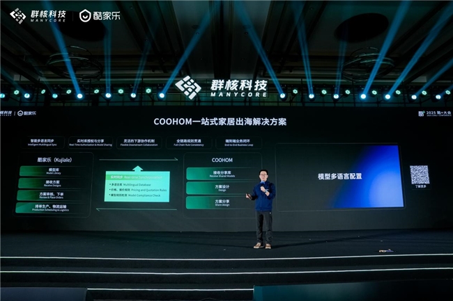 面对家居企业出海需求,群核科技依托海外产品 COOHOM 打造一站式出海解决方案。该方案支持 14 种语言与多国度量单位,覆盖 13 个地区的服务网络,通过多语言模型库同步、实时库授权分享、全链路规则贯通等核心能力,解决跨国协作中模型适配、规则不统一、价格不同步等痛点。无论是 “品牌远征” 的全球布网模式,还是 “全球制造” 的供应链合作模式,均能获得从设计协同到生产交付的全流程支持,助力企业开拓全球增量市场。