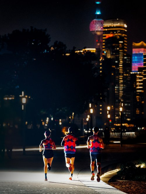 在不久前结束的上海马拉松中,出现了一抹独特的红蓝配色。这是英国跑步品牌soar为上海马拉松设计的城市限定系列,其设计灵感汲取自黄浦江两岸的夜色和“东方之珠”的霓虹流光。