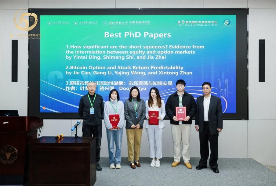 博士生论坛围绕“Commodity Market Liquidity in Two Days: The Impact of FOMC Announcements”“The T+2 Settlement Effect from Heterogeneous Investors”“逼仓风险与商品期权隐含波动率价差之谜——基于豆粕期权的证据”等论文,考察 FOMC 货币政策公告对大宗商品市场流动性的短期扰动、T+2 交割制度下不同投资者类型的行为差异,以及逼仓风险如何扭曲商品期权隐含波动率结构。在跨资产联动与风险管理方面,“Bitcoin Option and Stock Return Predictability”“Volatility Measurement and Its Impact on P&L in Option Hedging Strategies in the Chinese Commodity Market”“How Significant Are the Short Squeezes? Evidence From the Interrelation Between Equity and Option Markets”“Extreme Risk Spillovers among Chinese Commodity Futures: The Effects of Foreign Investor Access and Global Uncertainty”等研究,讨论了比特币期权在股票收益预测中的作用、波动率测度选择对商品期权对冲盈亏的影响、做空挤压在股权与期权市场间的联动证据,以及在外资准入和全球不确定性上升背景下中国商品期货市场极端风险的溢出机制。其他论文如“Option Valuation with Long-run and Short-run Volatility Spillovers: Evidence from Chinese Option Market”“Climate State Evolution and Systemic Financial Risk”“Beyond Forward-Looking: Enhancing Market Timing with Option-Implied Probability Weighting”“期权市场的非流动性溢酬:市场震荡与知情交易”“Pricing American Parisian Options under General Time-Inhomogeneous Markov Models”“Enhancing Pricing Efficiency by Nonparametric Approach in China’s SSE50 ETF Options Market with Put-call Disparity”“Does the Short-Term Reversal Exist in Equity Option Returns?”,则分别从波动率溢出与期权估值、气候状态演化与系统性金融风险、期权隐含概率与择时、期权非流动性溢酬、美式巴黎期权数值定价、ETF 期权非参数定价效率以及权益期权收益的短期反转效应等视角,拓展了博士生论坛在衍生品定价、风险溢价与数值方法上的研究边界。