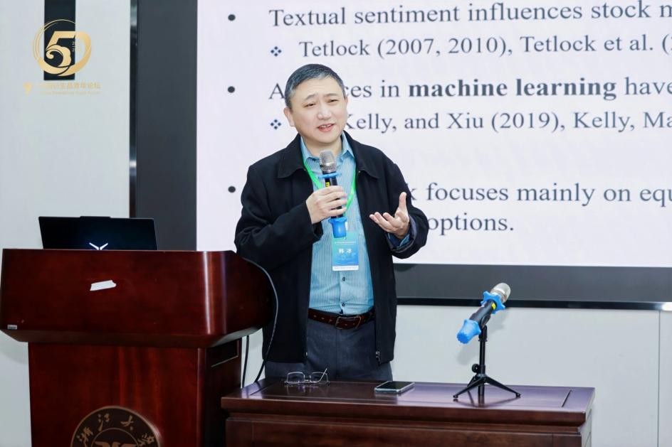 随后,在浙江大学曾涛副教授的主持下,加拿大多伦多大学罗特曼管理学院金融学教授、多伦多证券交易所资本市场讲座教授韩冰教授发表了题为“Forecasting Option Returns with News”的主旨演讲,研究了新闻对不同行业看涨、看跌期权收益率的影响。中国衍生品青年论坛荣誉顾问韩立岩教授,副秘书长邓弋威、郭彪、刘小泉、刘彦初、王天一、杨学伟、尹力博和张翔,论坛成员陈蓓、陈季龙、郭旭、何新江、黄金波、黄文礼、李罡、李庆、李守伟、梁巨方、刘杨树、闵峰、邵辉、孙宪明、童晨、童国士、王泽荣、吴鑫育、熊海芳、许奇、徐小华、翟佳、朱芳菲等专家学者们一同参加了开幕式、颁奖典礼、主旨演讲和后续主论坛以及博士生论坛的报告、点评以及讨论。