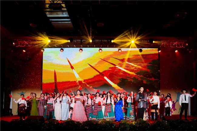 当晚一系列精心编排的节目既展现了学校对学生全面发展的重视,也深化了红色文化教育的浸润。节目形式丰富多元,涵盖歌舞、器乐、朗诵、小品等多个类别,架子鼓《counting stars》的激昂、各类舞蹈的灵动动感与藏族舞的民族风情交相辉映,独唱与器乐合奏的悠扬婉转传递真挚情感;其中,朗诵《永远的格桑梅朵》以铿锵之声诉说家国情怀,将红色精神融入艺术演绎,全方位彰显了巴川学子在多元培养下的综合艺术素养与向上精神风貌。