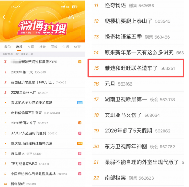 2026年第一波惊喜,来自雅迪和旺旺的“梦幻联动”。“骑雅迪,马年旺”的主题官宣海报,把过新年的仪式感拉满了。当然,最引人关注的,还是雅迪C18-旺旺联名款电动车。不仅造型抢眼,还自带“旺”运体质,将童年记忆符号融入出行场景,#雅迪和旺旺联名造车了#话题一经发布,很快便冲上微博热搜,引发全网热议。