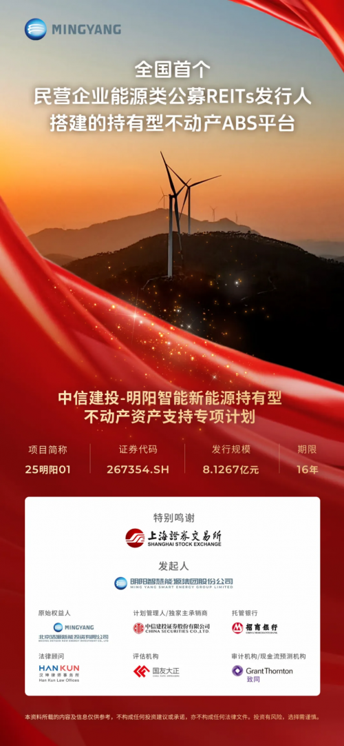 该项目是明阳智能与中信建投证券在成功推出首单陆上风电公募REITs之后,于多层次REITs市场的又一重要实践。通过搭建公募REITs与机构间REITs并行的双平台模式,明阳智能实现了存量资产与资本市场的高效对接,为新能源电站“滚动开发”战略提供了可持续的权益融资支持,也为民营企业盘活重资产探索出可复制的路径。