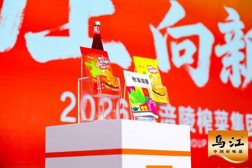 品类拓展方面,萝卜产品同比增长超20%,成为2025年业绩新增长点。子公司辽宁开味食品与韩国一味株式会社深度合作,推动萝卜干国际化;嘎吱脆萝卜干凭借独特口感获年轻人青睐,拉动业务增长。大会现场,涪陵榨菜集团副总经理皮林发布8款践行“一顿健康餐、一口美食味”理念的新品:乌江老重庆杂酱、乌江肉末豇豆、乌江黄精榨菜酱3款产品延续民间风味,升级健康配方与便捷属性,发力家庭佐餐市场;乌江油辣椒、乌江虎皮青椒2款产品坚守“干净配方、自然鲜香”,适配多元烹饪场景;乌江榨菜脆片、胭脂萝卜果汁、榨菜果脯等3款产品是乌江在健康零食化及功能饮品化方向的重要尝试。此次大会上新品的发布彰显了涪陵榨菜集团突破品类边界的发展决心。