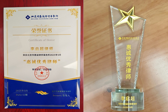 李启超律师斩获“惠诚优秀律师”称号