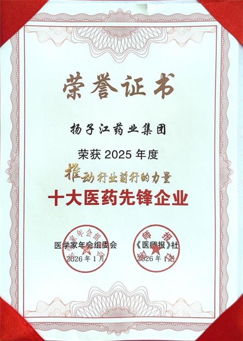 近日,2025年度“推动行业前行的力量・十大医药先锋企业”榜单正式公布,扬子江药业集团凭借在质量管控、协同创新及产业生态构建领域的扎实举措成功入围。这份殊荣既是对企业综合实力的高度肯定,也印证了其作为链主企业,紧扣健康中国战略、引领医药产业创新升级的充分认可。