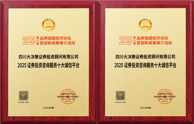在这场备受瞩目的行业盛会上,四川大决策证券投资顾问有限公司(以下简称“四川大决策”)凭借在投顾服务领域的创新实践以及金融科技研发方面的大力投入,一举斩获“2025证券投资咨询服务十大诚信平台”与“品牌强国·证券投资咨询服务最佳品牌”两项大奖,再次成为全场焦点。