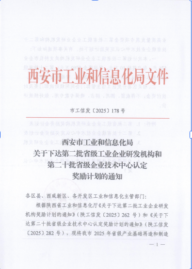 近日,陕西省工业和信息化厅发布《关于下达第二十批省级企业技术中心认定奖励计划的通知》(陕工信发〔2025〕282号),中建西部建设九公司所属技术中心获陕西省企业技术中心专项奖补30万元。