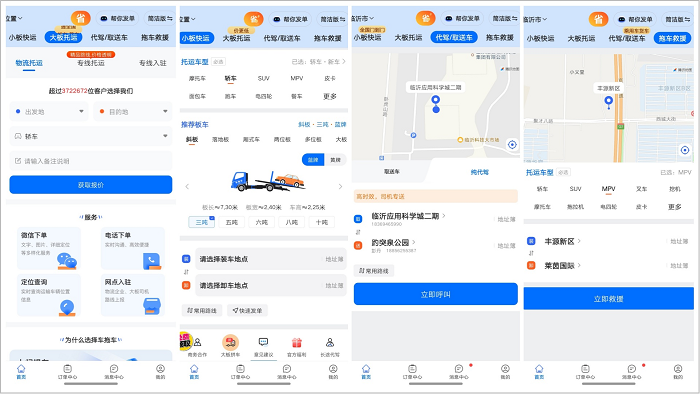 车拖车APP服务页面显示,其核心服务包括小板快运、大板托运、代驾/取送车、拖车救援。其中,小板快运由单台小板车直达专送(无拼车刮蹭风险),全程精密防护且时效更快,支持追加专项投保,适合超跑、古董车、新能源车等高价车辆运输或展车、试驾车等特殊车辆紧急调运;大板托运以开放式笼车拼运模式为主,线路覆盖广泛、性价比高、每单必购货运险,但时效性一般,适合私家车跨省搬家、新车/二手车批量转运等时效性要求不高的常规车辆运输场景;代驾/取送车是由专业持证职业司机按照指定指点与目的地,驾驶客户车辆完成跨省、跨城、同城交付后自行返程,适合长途自驾返程、租车异地还车等个性化场景;拖车救援则是由车拖车APP整合的社会救援力量,可提供24小时拖车救援服务,救援类型包括故障拖车、换胎补胎、加水送油、专业脱困等基础救援和涉水处理、交通事故协助等特殊场景救援,消费记录后台可查,支持线上开票。此外,车拖车还可提供定制化企业汽车物流服务,如:汽车/机械设备供应链物流解决方案、商业活动汽车物流解决方案等。