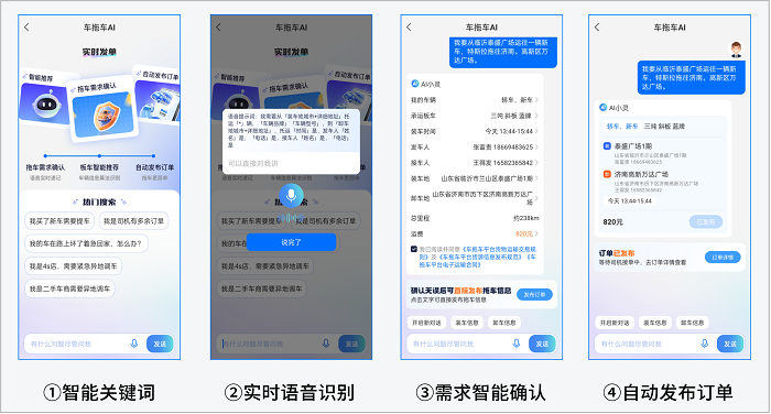 (2)运力匹配更高效。车拖车自研智慧调度平台,打通需求分析、路径规划、风险预警等模块,构建全流程数字化体系,并基于AI算法快速完成路径规划与运力匹配,有效避免运输延误与运力挤兑;