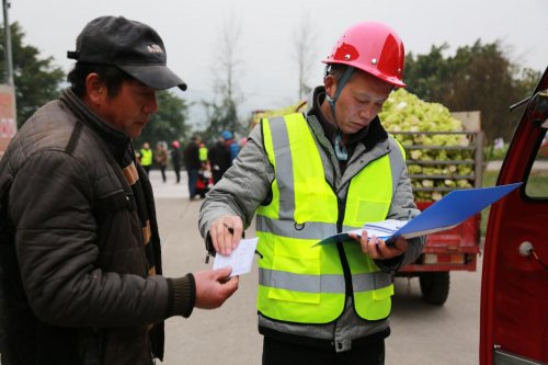 在收购现场,一辆辆满载着青菜头的农用车有序排队,等待入场交售。菜农们的脸上写满了忙碌,也洋溢着收获的喜悦。“今年不一样,不用排长队了!”来自江北街道二渡村3组的潘友贵笑着说:“街道和村里提前帮我们跟企业对接好,我们是按预约的时间来的,到了就能办,又快又顺当。而且价格有保底,心里踏实。”