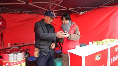 更让菜农感到暖心的是周到的服务。据了解,涪陵榨菜集团在全区设立了38个收购服务站。这些服务站不仅是一个交菜点,更像一个临时的“家”。里面备有24小时的热水,让寒风中赶来的农户能喝口热的暖暖身子;设置了免费充电设施,方便大家给手机充电;还摆放了桌椅,供人们休息等候。现场不仅有企业的工作人员,还有来自村(社区)的志愿者,他们耐心地帮助不太会用智能手机的老人家完成操作流程,仔细核对结算信息,确保每一分钱都能准确、及时地到账。
