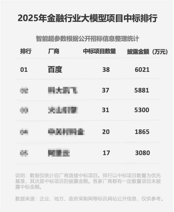 1月31日消息,根据近期媒体对2025年公开市场大模型相关招投标信息的统计,金融行业全年大模型中标项目达587个,中标金额约15.06亿元,较2024年分别增长341%、527%。其中,百度智能云连续两年成为中标项目数和中标金额最多的厂商。