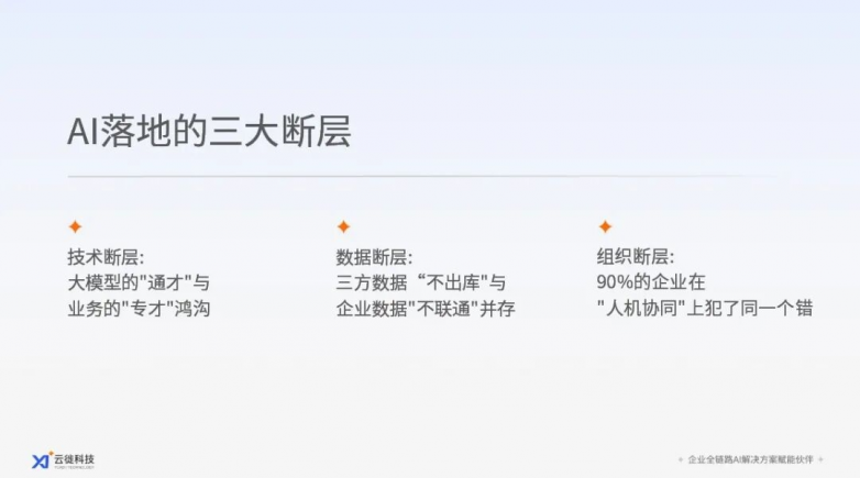 这些障碍相互交织,让先进技术难以真正渗透到业务核心,成为横亘在企业AI 转型路上的 “拦路虎”。