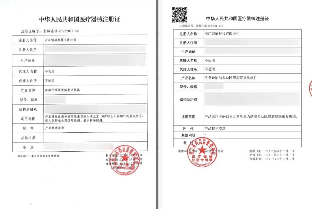 此临床研究,正是基于强脑科技非侵入式脑机接口产品“专注欣”医疗版开展。产品采用更加轻便、易于佩戴的形态,相较于传统脑电设备布线复杂、电极数量多、操作门槛高的使用方式,可更快速、更便捷地完成脑电采集与训练。该产品包含注意缺陷与多动障碍康复训练软件和前额叶单通道脑电采集器,均已获得医疗器械注册证,实现了脑机接口ADHD干预领域软硬件全链条医疗器械认证,这标志着脑机接口技术在儿童神经康复领域从实验室研究走向规范化临床应用的重要突破,为ADHD儿童提供了循证医学支持的非药物干预新选择。