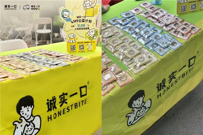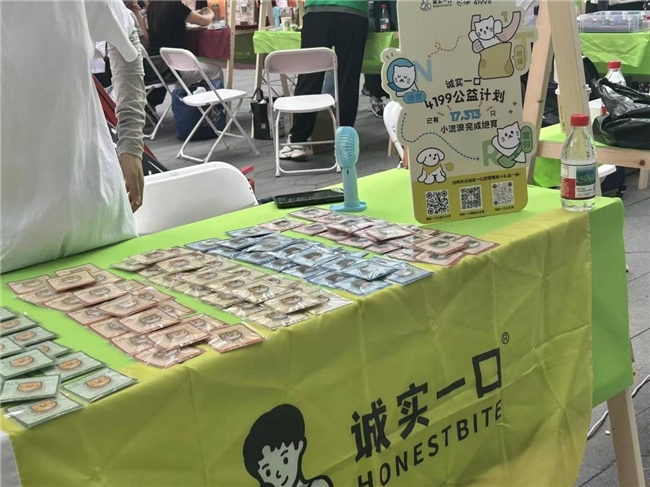 公益市集中,诚实一口展示了核心公益项目——“4199公益绝育计划”。摊位陈列了公益周边、绝育历程,工作人员通过现场演绎的方式,向观众科普绝育知识,传播TNR(捕捉-绝育-放归)理念。