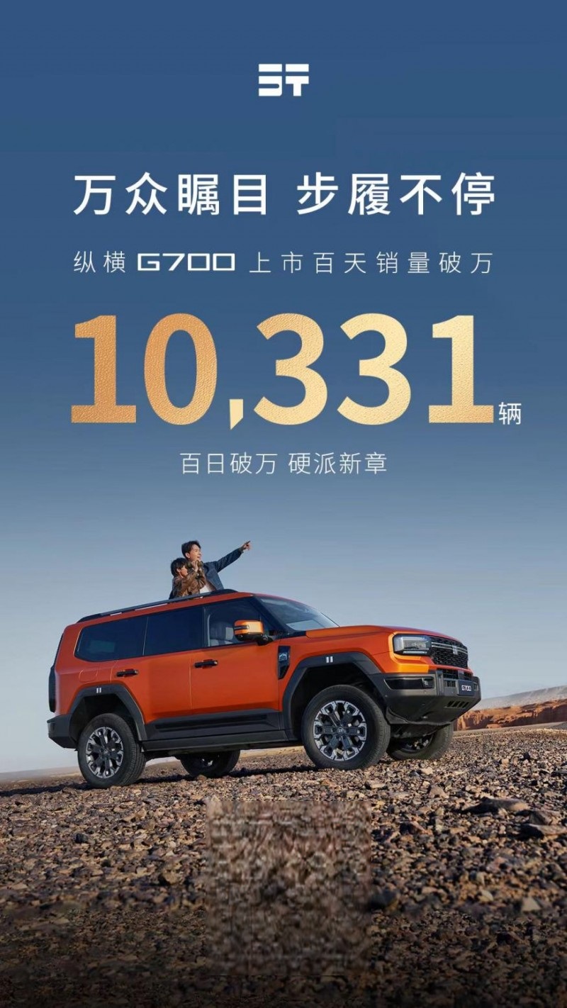 万众瞩目,步履不停!纵横G700上市百天销量突破10331辆!