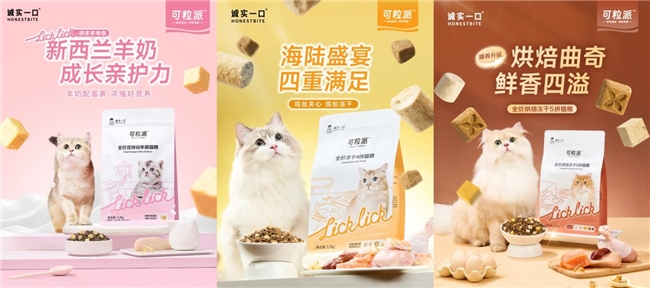 “诚实一口”奇迹小金袋烘焙猫粮是一款美毛专研产品,甄选挪威深海三文鱼蛋白肽,搭配多种优质美毛成分,采用注心小蛋挞创新工艺保留营养活性,可从内而外改善猫咪毛发的柔顺度、光泽感与强韧度,适配美毛需求。注重高营养、偏爱爆款的家庭,可选择配方升级的“诚实一口”P40系列。该系列为热销爆款,包含P40和P40 PLUS两款,常年位居电商热销榜。升级后主打“高鲜肉零肉粉”,人食级鲜肉含量≥80%,P40有三种口味,P40 PLUS则额外添加10%冻干生骨肉,适口性更优,满足猫咪对鲜肉的需求。追求高性价比的养猫人士,可关注“诚实一口”拼多多渠道专供的可粒派LickLick系列。该系列包含幼猫粮、冻干四拼及五拼烘焙猫粮三款,幼猫粮采用单一低敏配方,添加新西兰羊奶小方,适配幼猫肠胃与成长需求;冻干四拼、五拼款则兼顾营养与适口性,分别添加深海鳕鱼、多种冻干及益生菌,全方位呵护猫咪健康。