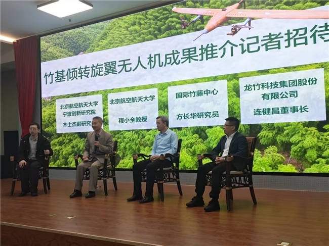近日,由国际竹藤中心牵头,联合北京航空航天大学宁波创新研究院和龙竹科技集团股份有限公司共同研发的竹基倾转旋翼无人机在天津欢喜机场首飞成功。该无人机结构中竹基复合材料占比超过25%,这在全球固定翼无人机中,尚属首次实现如此大比例的竹材应用。