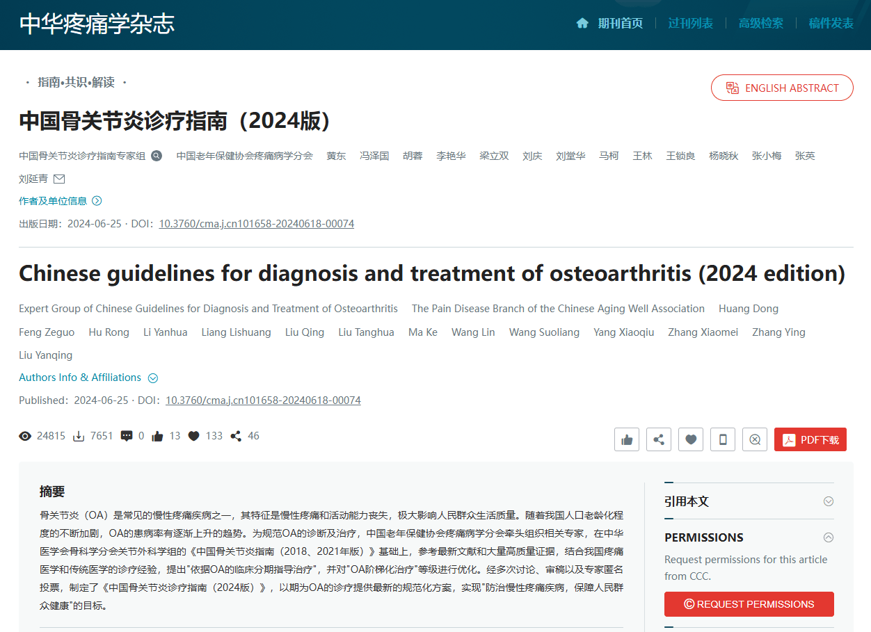 《中国骨关节炎诊疗指南(2024版)》显示,我国40岁以上人群骨关节炎的总体患病率已高达46.3%