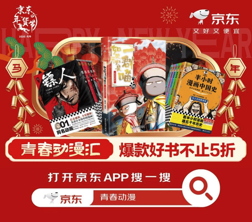 新的一年,是探索新故事的最佳起点。动漫不仅是画面与情节的交织,更是情感与力量的传递。京东图书年货节青春动漫品类日热血开启,以爆款好书不止5折的超值优惠,涵盖趣味知识启蒙、治愈情感陪伴、热门次元收藏等多元需求。打开京东APP搜索“青春动漫”,无论是追寻江湖侠气的国漫爱好者,还是沉迷奇幻叙事的轻小说读者,都能在此找到共鸣。
