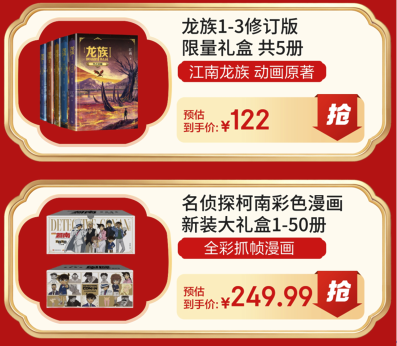 跟随故事主角开启烧脑解谜与青春冒险的双重体验,在沉浸式剧情中收获思维与情感的共鸣,亦是假期的绝佳选择。伴随《龙族》见证路明非从懵懂少年成长为肩负使命的屠龙者,在蜕变与羁绊中感受青春的热血与温柔;或是跟随《名侦探柯南》破解环环相扣的谜案,在抽丝剥茧的推理中体验解谜的畅快与正义的力量。两部作品以不同的叙事魅力,带来思维与情感的双重触动。京东图书年货节期间,《龙族1-3修订版》限量礼盒5册活动价122元,《名侦探柯南》彩色漫画新装大礼盒1-50册249.99元,即刻收藏,开启一场沉浸式的阅读之旅。