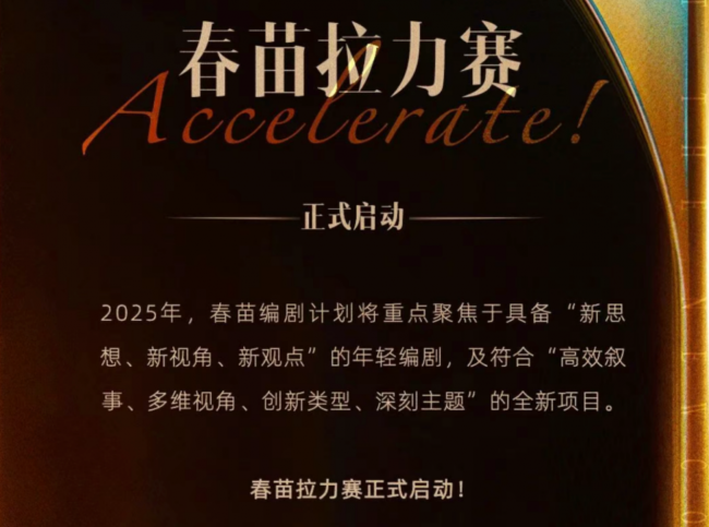 2024年6月,春苗编剧计划正式启动。该计划不设过高门槛,面向所有怀揣新创意、新表达的年轻人开放。通过适当的奖金激励与扶持机制,帮助年轻创作者将想法完善成可行剧本。截至目前,该计划已相继扶持27位新锐编剧,25个原创项目,其中9个项目进入优酷开发流程。