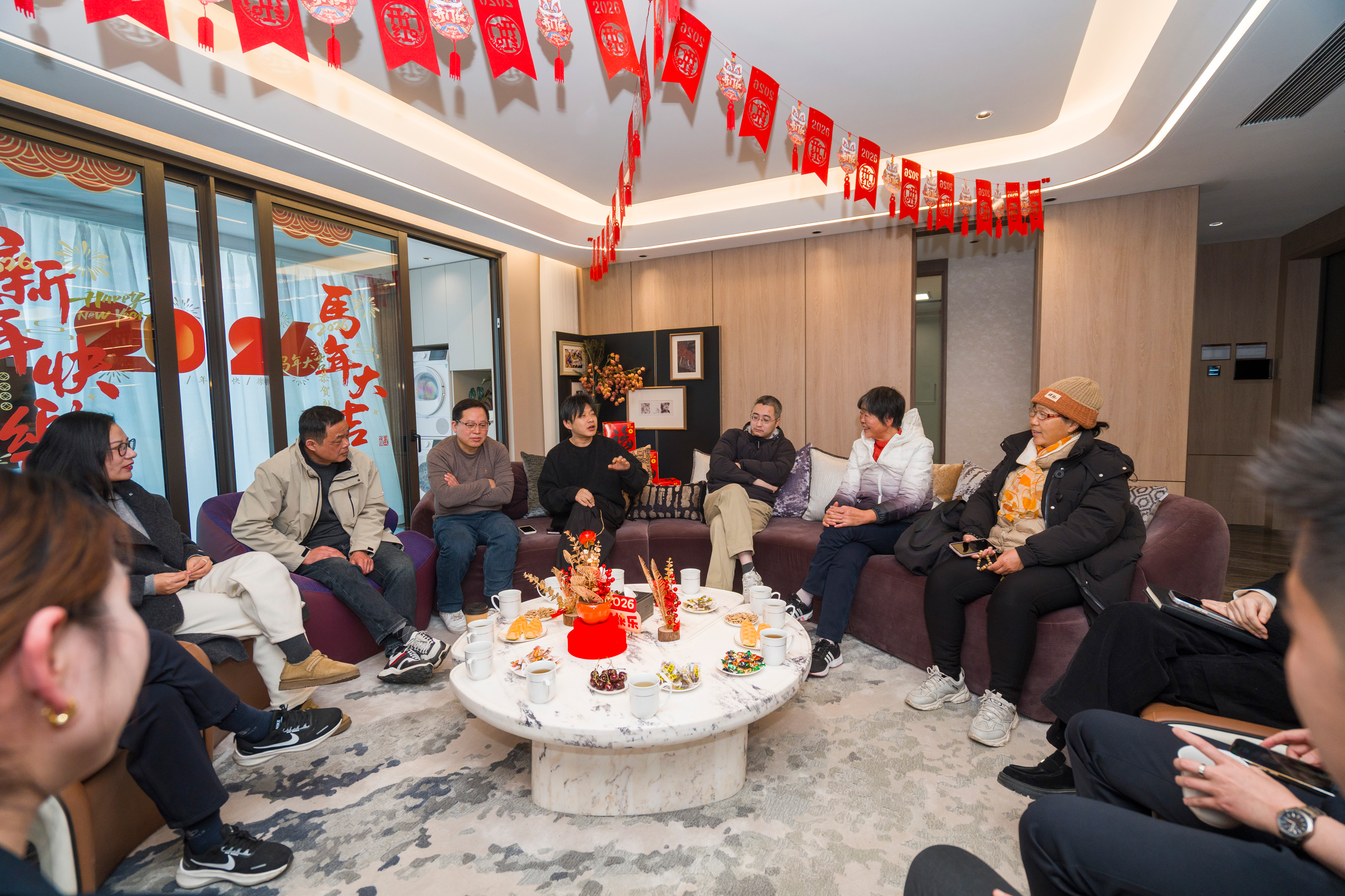 新春的暖意,不仅在热闹的市集,也在真诚的沟通中流淌。2月8日下午,在双漾未来城7幢样板房内,一场温馨而重要的“新春茶话会”同步举行。联塘社区、市房产公司、绿城服务团队代表,与多位业主及意向客户围坐一堂,共话家园未来。