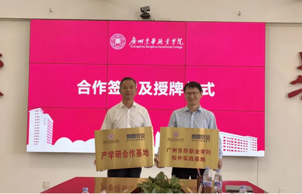 广州东华职业学院信工学院院长潘柳青、麒麟信安广东子公司副总经理章送代表双方签署了《校企战略合作框架协议》《校外实习基地合作协议》《订单培养协议》,并举行了“产学研合作基地”和“校外教师实习基地”授牌仪式。双方将在专业共建、课程开发、共建订单班、实习实训建设等方面落实具体合作,构建“入学即入企,毕业即就业”的人才培养闭环,做实校企协同育人。