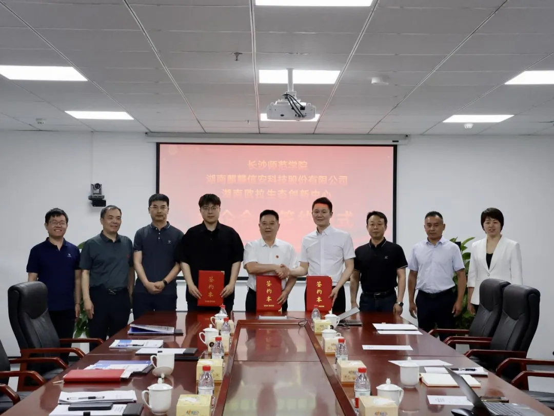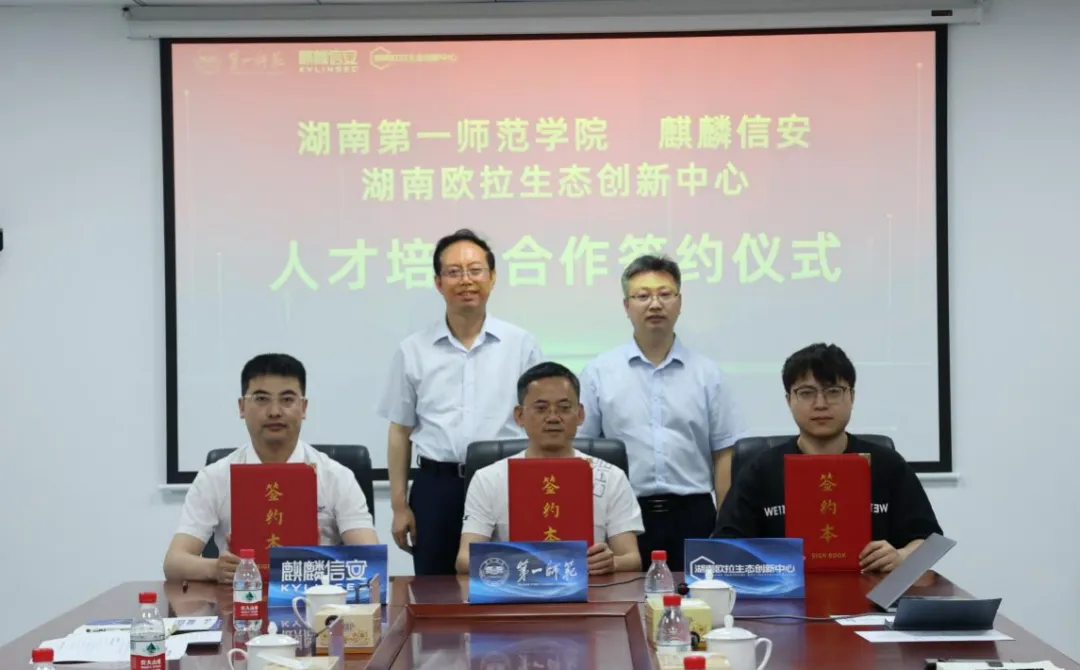 长沙师范学院副校长徐庆军、麒麟信安高级副总裁王攀以及湖南欧拉生态创新中心副主任刘华杰代表三方签署了《校企合作框架协议》。通过引企入校,共同制定信创人才培养方案、建设信创课程、开发信创教材,联合生态企业开展信创项目攻关等举措,三方共同打造信创认证中心和人才培养基地,为信创行业提供专业化教育认证和培训服务。