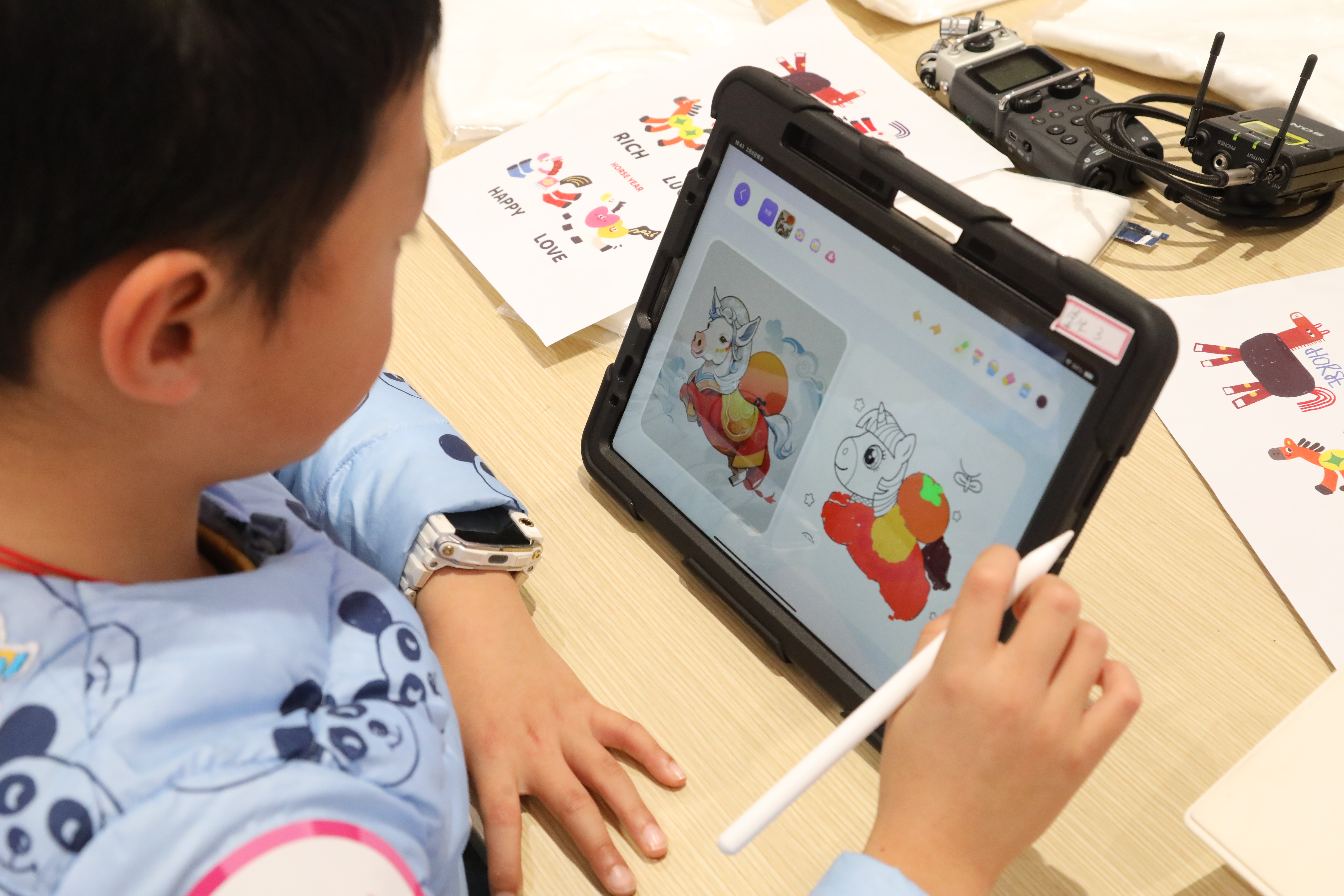 四年级的同学们围坐在电子画板前,指尖轻轻滑动,一匹匹融合了中国传统纹样的数字奔马在屏幕上逐渐成形。这不是普通的美术课,而是一堂融合科技与艺术的智慧课堂。近日,在孩子王联合中国美术学院专家共同支持的“AI智绘体验营”中,南京玄武外国语学校附属小学四年级“东小鹿”读书小组的同学们,完成了一次别开生面的寻找年味之旅。