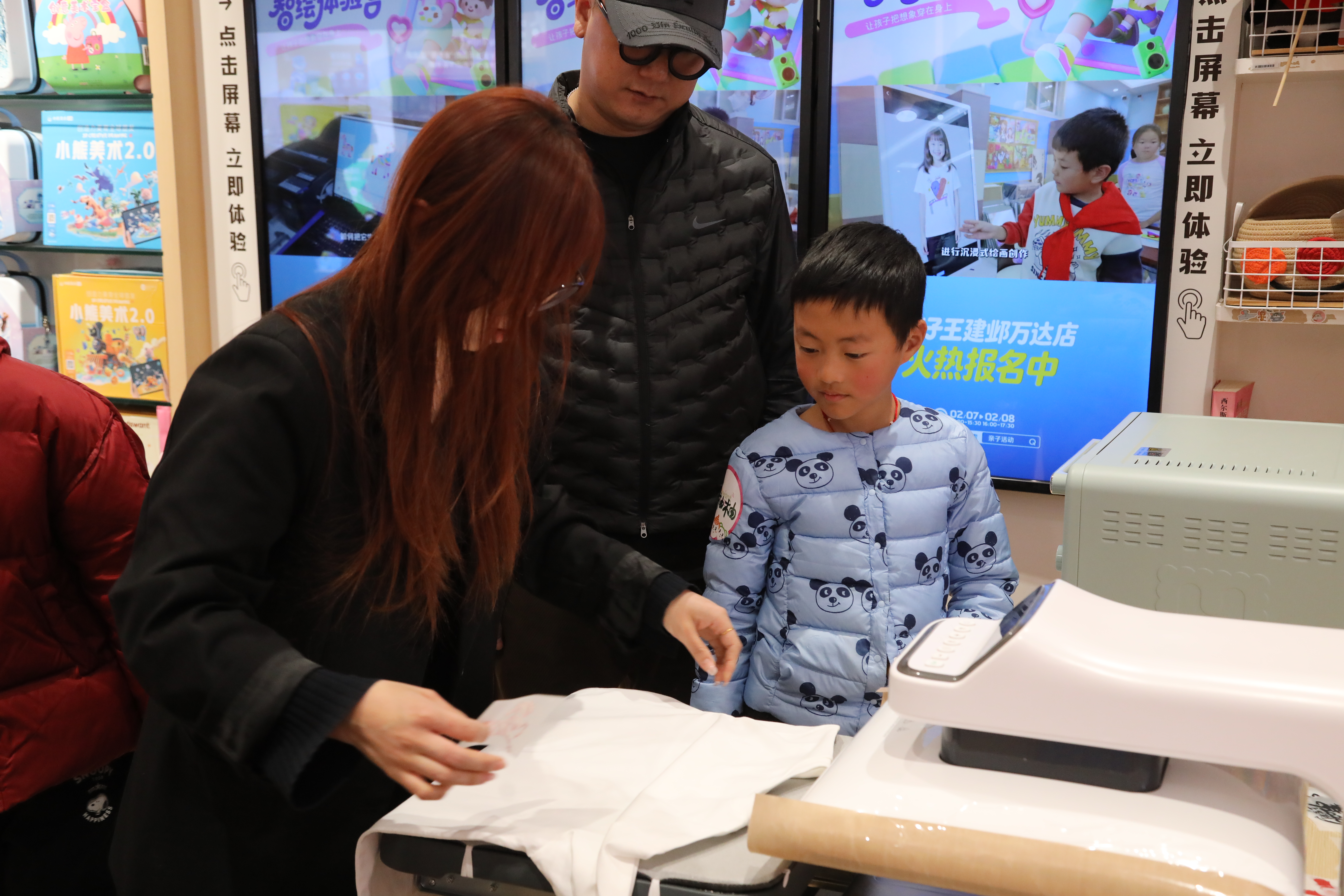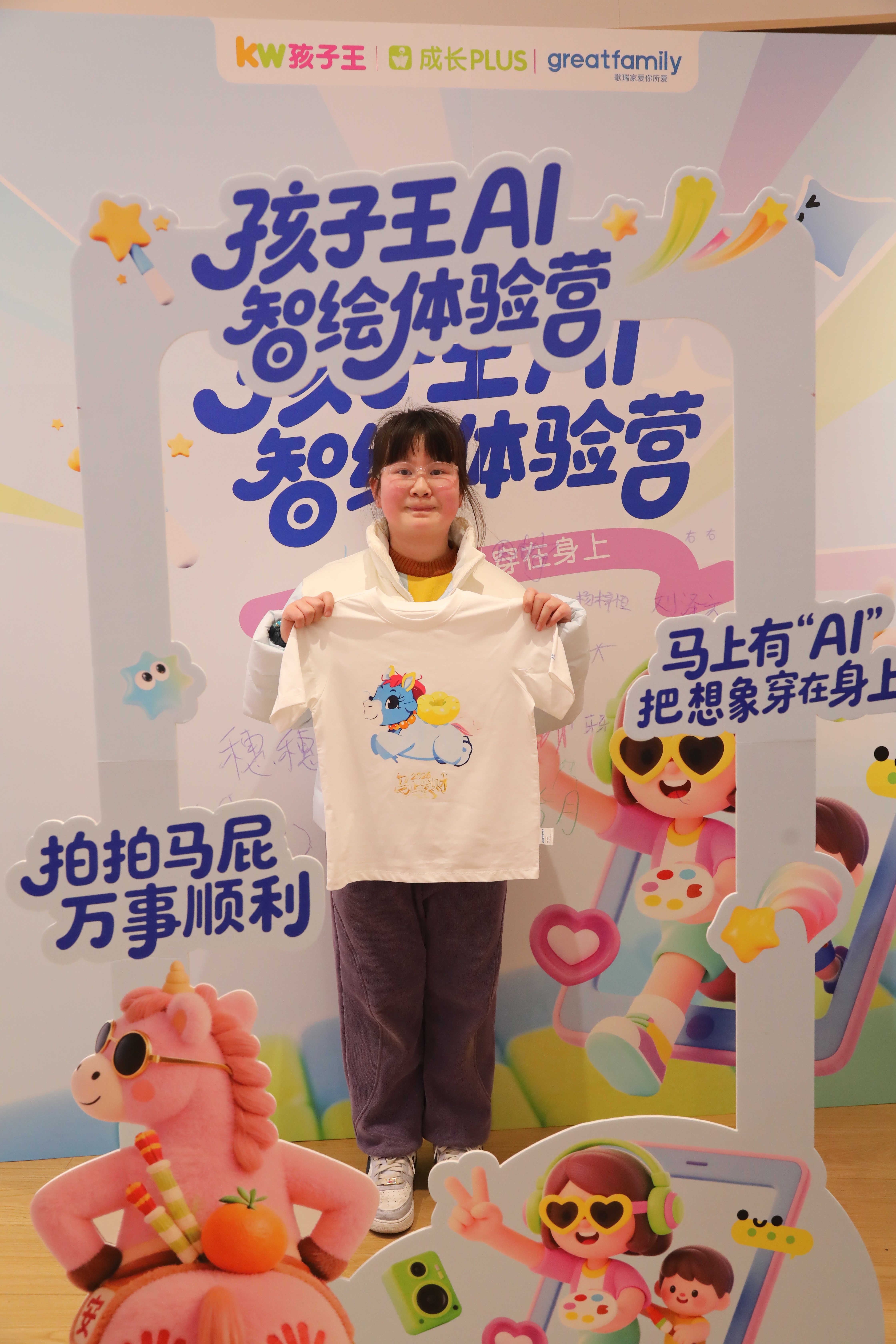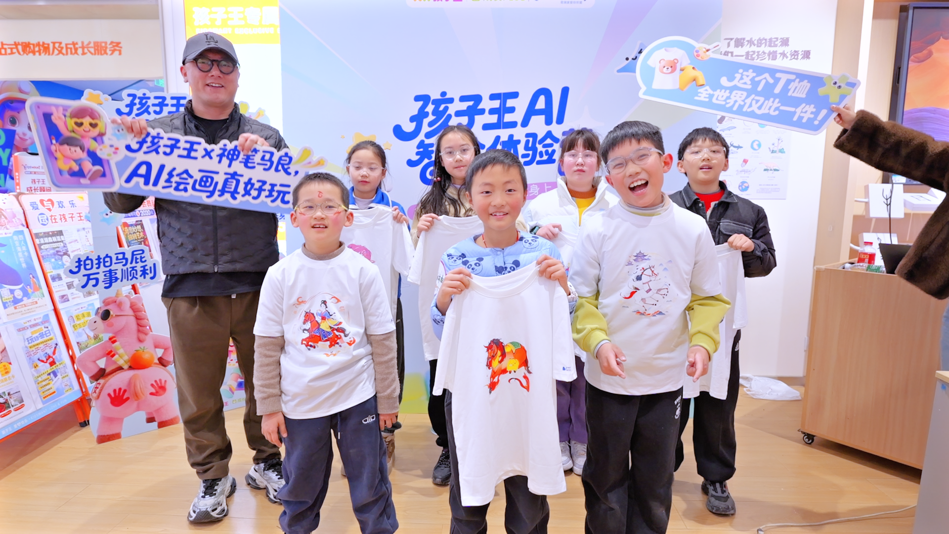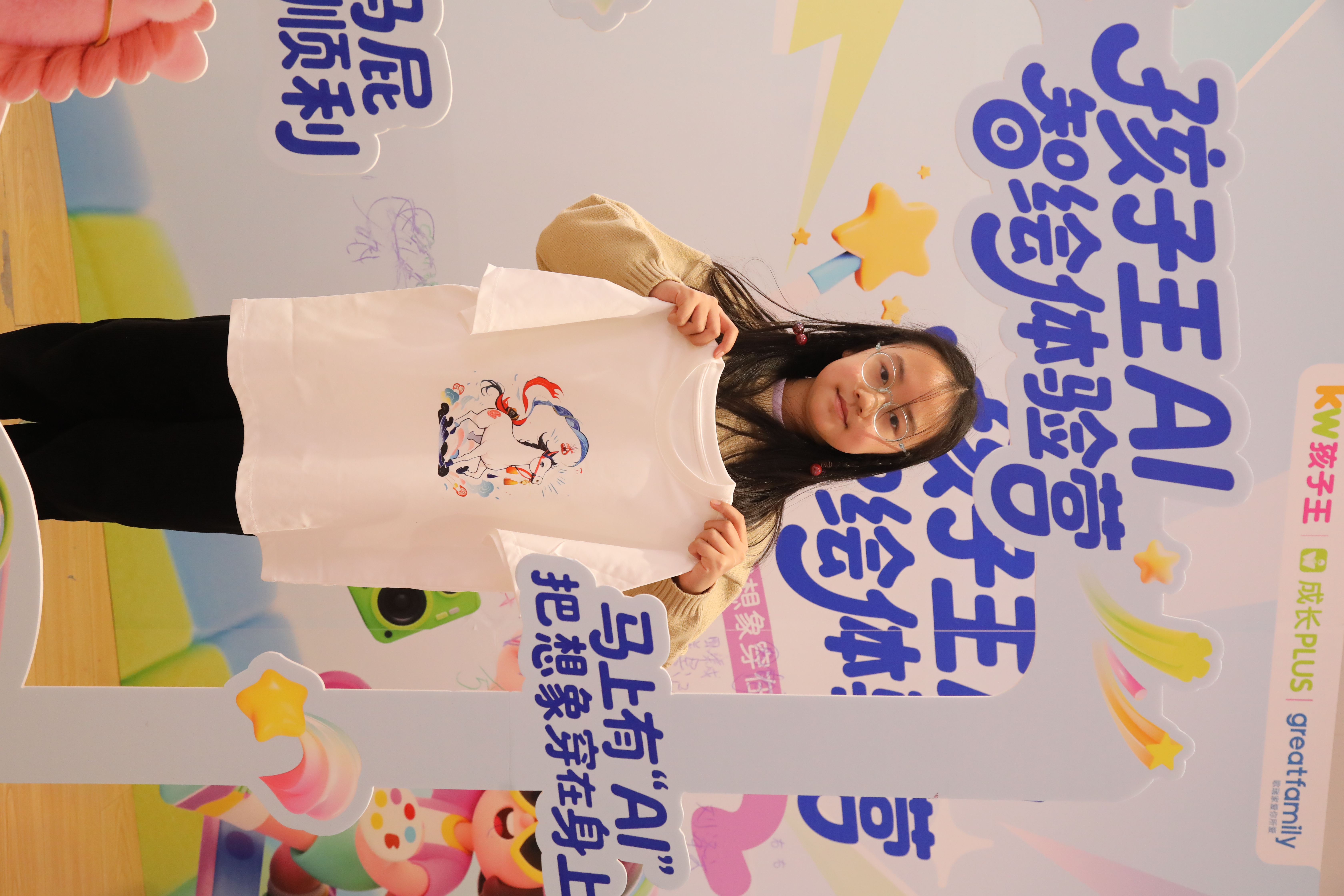 AI优化完成后,孩子们的画作迎来了激动人心的环节——通过热转印技术,这些数字作品被印制在纯棉T恤上。当看到自己设计的马年图案从屏幕跃然衣上,孩子们脸上写满了成就感。这一过程不仅让他们了解了数字创作到实物成品的完整流程,也真切感受到科技与传统结合的魅力。