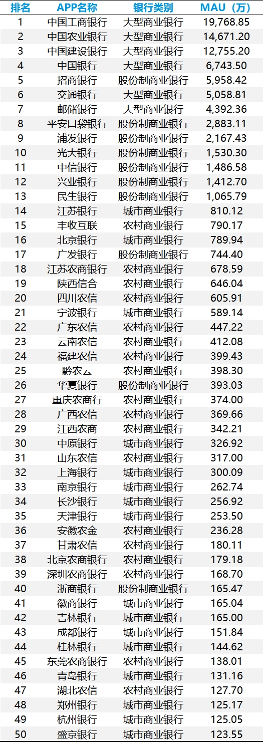 手机银行数字化综合服务能力TOP50:头部银行月活逼近2亿,“五化”服务成为未来升级大方向