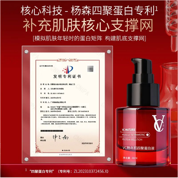 1.专利四聚蛋白组合物(专利号:ZL202310372456.X)。:胶原+血清蛋白+弹性蛋白+纤连蛋白,深入肌底,撑起年轻架构。