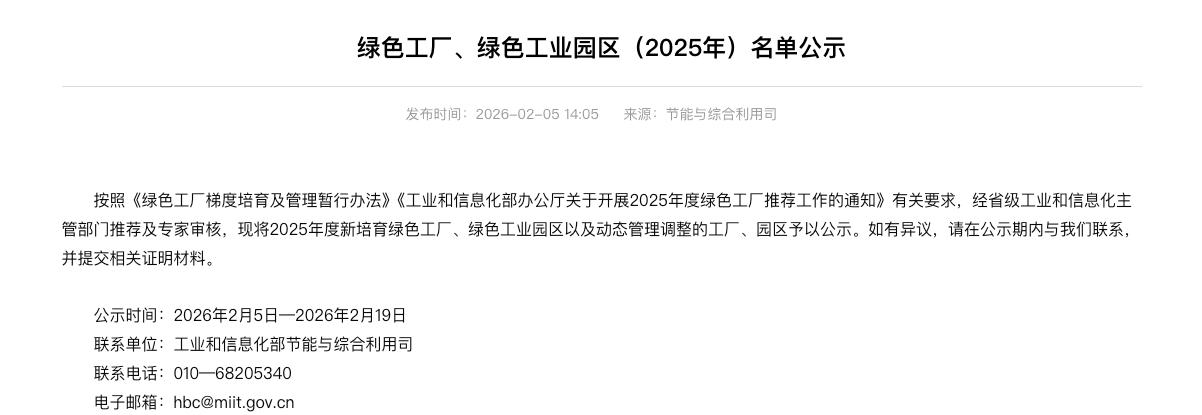 近日,工业和信息化部公示绿色工厂、绿色工业园区(2025年)名单,中国飞鹤旗下的甘南、龙江、拜泉三家工厂成功入选。至此,飞鹤已累计拥有包括飞鹤克东、泰来、吉林在内的共六家国家级“绿色工厂”。