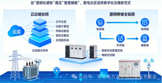 方案突破传统台区治理“感知终端+储能设备”的硬件堆砌思路,依托华北电力大学电力安全专委会的学术积淀,打破“数据与控制脱节、储能与治理脱节”的行业困局,以“透明化”为核心主线,构建"云-边-端"协同的数字化台区治理新范式: