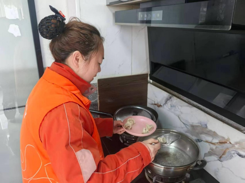 “王奶奶,今天元宵节,我来帮您煮个饺子,寓意平安团圆。”征得老人允许后,物业人员走进厨房。不一会儿,白白胖胖的饺子个个鼓肚浮起,像元宝般在锅里打转,小小的客厅里瞬间热闹起来。王奶奶说,自己儿女常年在外,平日里家里安安静静,好久没有这么热闹过了。桌上热气腾腾的饺子冒着香气,是家的味道,更是暖心的关怀。