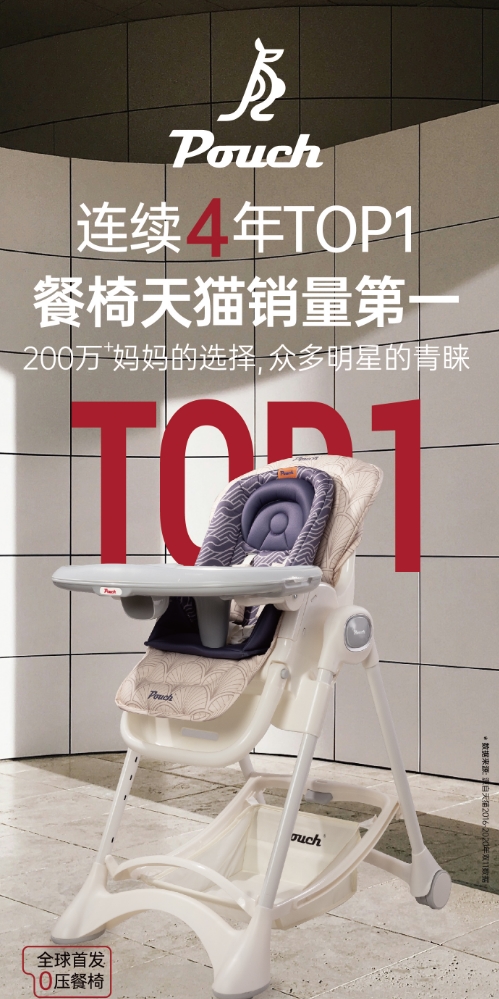 时至今日,POUCH的产品矩阵已覆盖婴儿推车、儿童安全座椅、宝宝餐椅、学步车等多个品类。在天猫平台上,K05餐椅常年稳居类目前列,P8高景观推车成为众多新生家庭的入门首选。