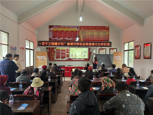 为切实守护老年人财产安全,筑牢养老反诈安全防线,紧扣监管“3·15”金融消保教育宣教活动要求,融合“百社千村”金融教育工程项目,在2026年“3·15”国际消费者权益日来临之际,3月9日上午,人保财险云南省、市、县三级机构联合走进定点帮扶的师宗县雄壁镇天生桥村委会,开展“清朗金融护银发,百千工程暖夕阳”养老防诈公益宣传活动,为当地老年群众送上一堂实用易懂的反诈安全课。
