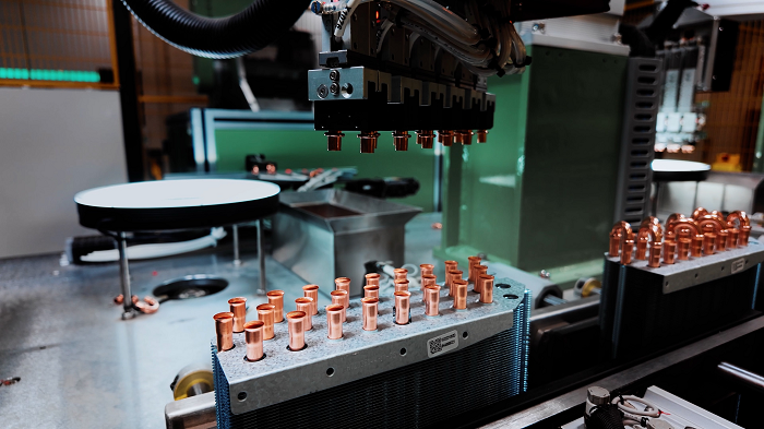 蒸发器和冷凝器这“两器”是空调核心部件,行业自动化率普遍仅30%,而海信在此建成全球唯一的“黑灯生产车间”,实现全工序自动化,多点焊接自动化技术将焊接不良率下降57%。